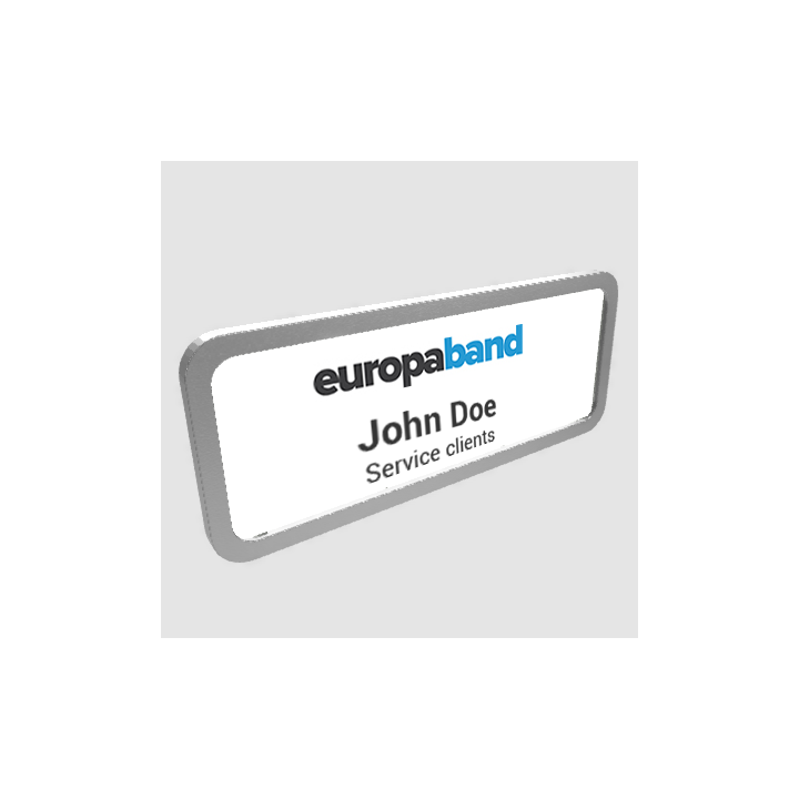 Le format plat et rectangulaire de ce badge (81 x 33 mm) est idéal pour afficher les informations essentielles de manière claire et ordonnée. Sa surface lisse permet une impression nette et précise, garantissant une excellente lisibilité, même à distance.