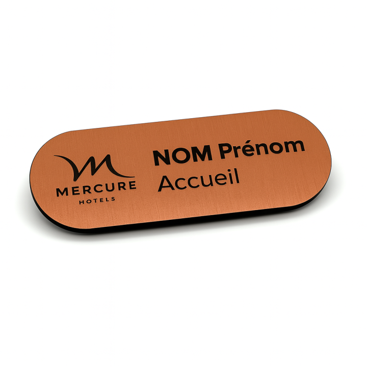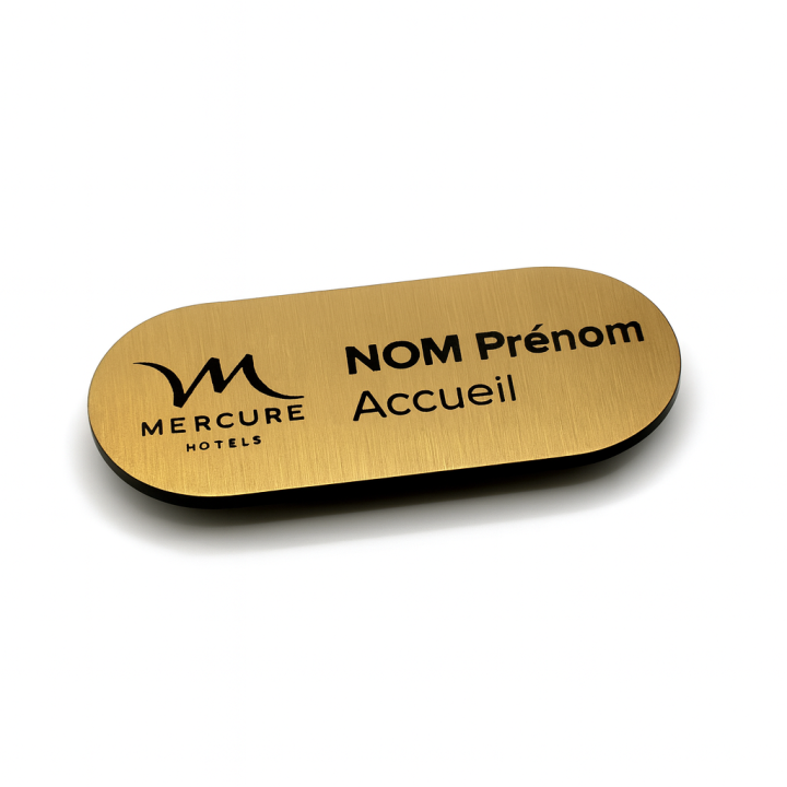 Le badge nominatif aimanté ovale 70x30 mm effet métal brossé gravé est bien plus qu’un simple accessoire : c’est un véritable atout d’image pour votre entreprise.